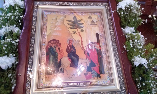 Накануне праздника, за вечерним богослужением настоятелем храма протоиереем Анатолием Сопига был совершен чин освящения верб. Этот праздник в России называют Вербным воскресеньем, так как в нашей стране верба распускается одной из первых и символизирует пальмовые ветви, которыми жители Иерусалима приветствовали Спасителя.