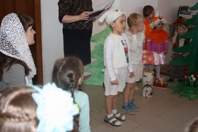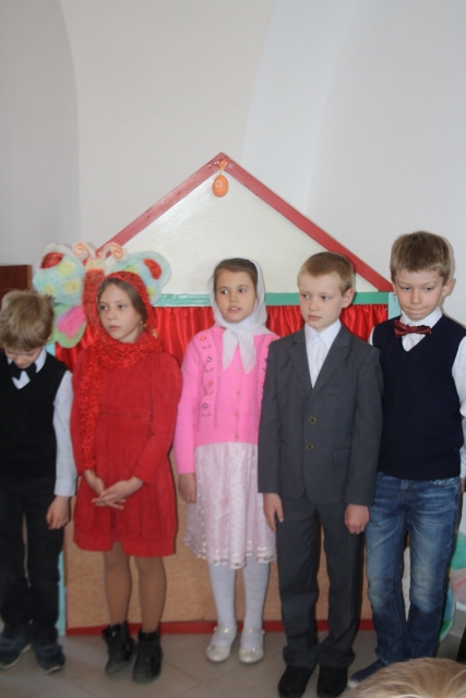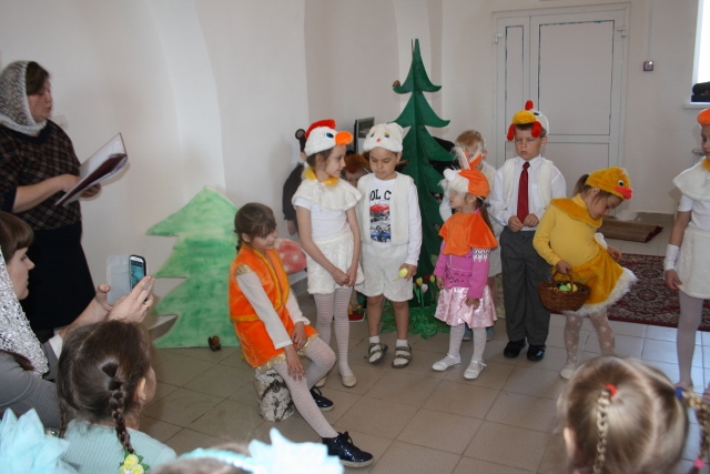 Воспитанники дошкольной группы показали веселый и поучительный спектакль «Пасхальное яичко» для него ученики средней группы заранее изготовили декорации в виде лесной полянки и избушки, а родители и преподаватели подобрали костюмы. Дошкольная группа впервые показывала спектакль — детки с большим энтузиазмом и старанием репетировали свои роли, чтобы порадовать любимых мам. И им это удалось — маленьких артистов благодарили громкими и продолжительными аплодисментами. Продолжили праздник ученики младшей группы, которые читали стихи о Светлом Христовом Воскресении и пели песни.