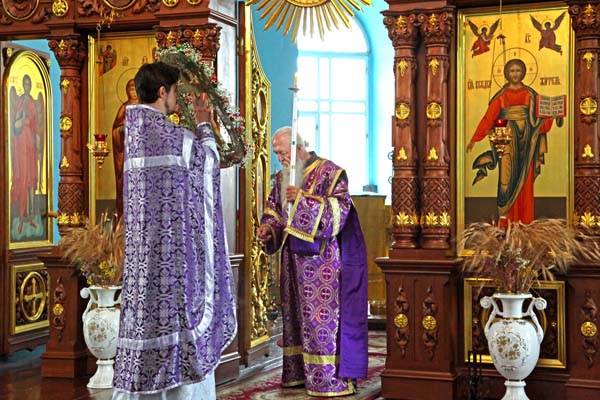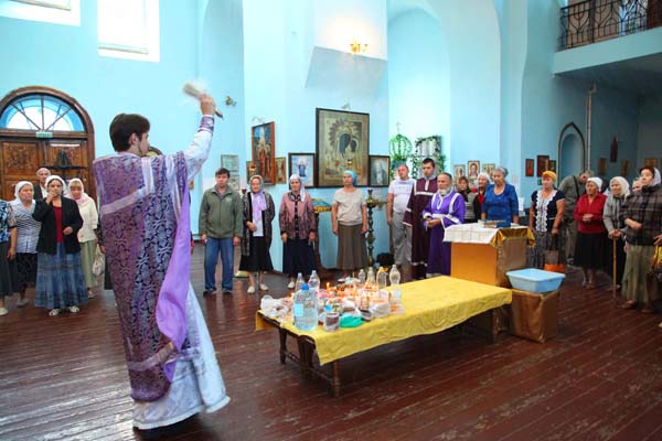 Утром 14 августа была совершена праздничная Божественная Литургия. Ее возглавил иерей Георгий Чернявский, ему сослужил диакон Иоанн Алексеев. Исповедь принимал иерей Олег Соболевский. По отпусте Литургии было совершено уставное малое освящение воды. Во время водосвятного молебна была прочитана молитва на освящения меда нового урожая. Иерей Георгий Чернявский