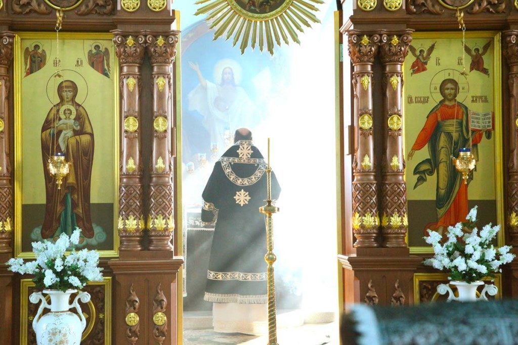 Преосвященнейшему Владыке сослужили настоятель храма протоиерей Анатолий Сопига и клирик храма священник Олег Соболевский.