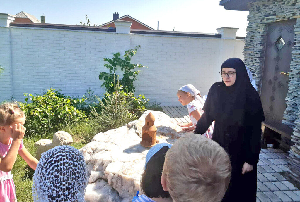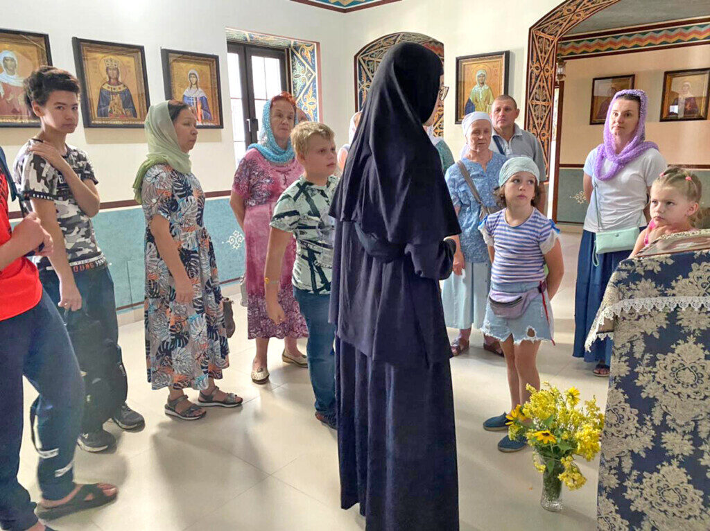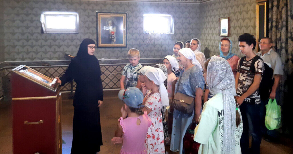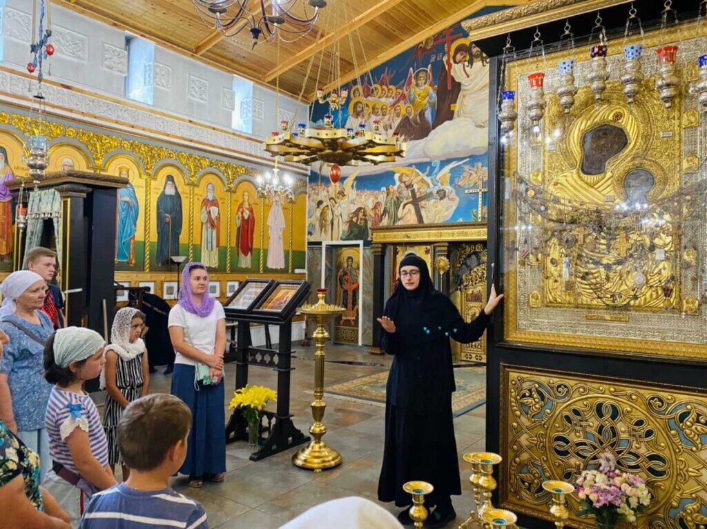 Для многих ребят это было первое знакомство с православным монастырем, его чудесными храмами, с иконописной мастерской, святым источником и Богородичной дорожкой. Ребят и их родителей радушно встретила насельница монастыря — послушница Елена, которая проводила экскурсию и доступной форме рассказывала о достопримечательностях монастыря, о его истории.