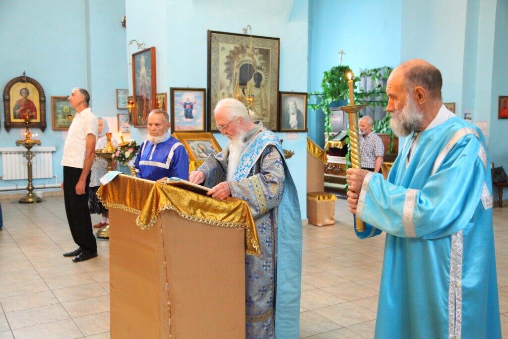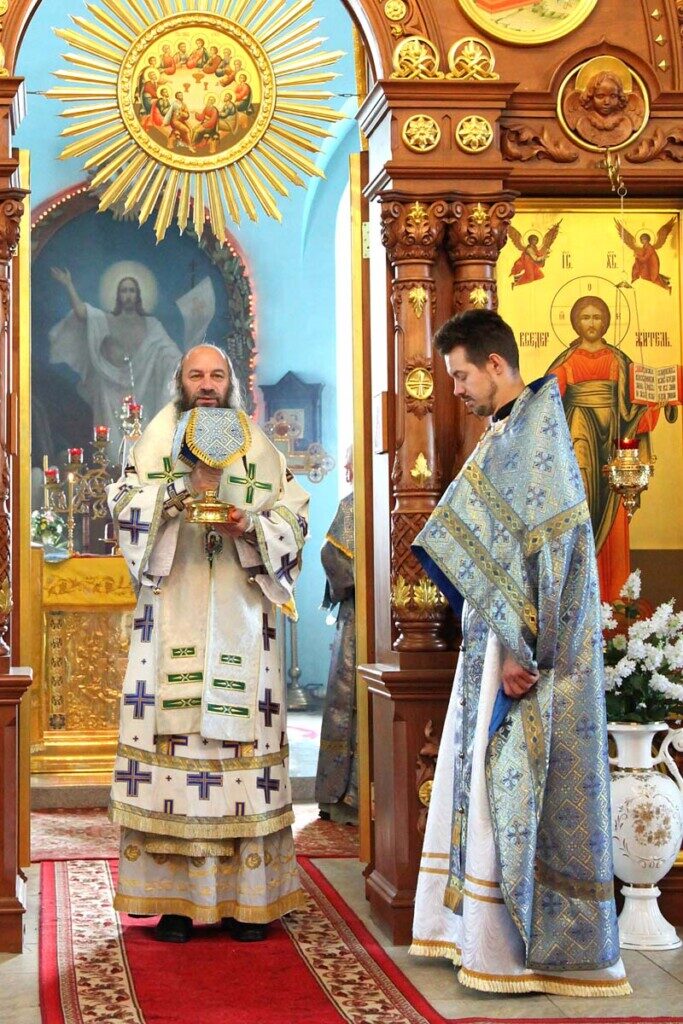 ОРСК. 5 августа 2021 г. В четверг седмицы 7-й по Пятидесятнице, день празднования в честь Почаевской иконы Божией Матери (1675); иконы Божией Матери, именуемой «Всех скорбящих Радость», епископ Орский и Гайский Ириней возглавил Божественную литургию в Покровском храме (бывшего женского монастыря).