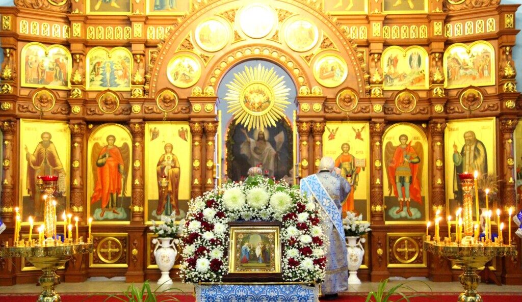 ОРСК. 15 февраля 2022 г. Седмица сплошная, в праздник Сретения Господа Нашего Иисуса Христа, была совершена Божественная литургия в храме Покрова Пресвятой Богородицы (бывшего женского монастыря) города Орска.