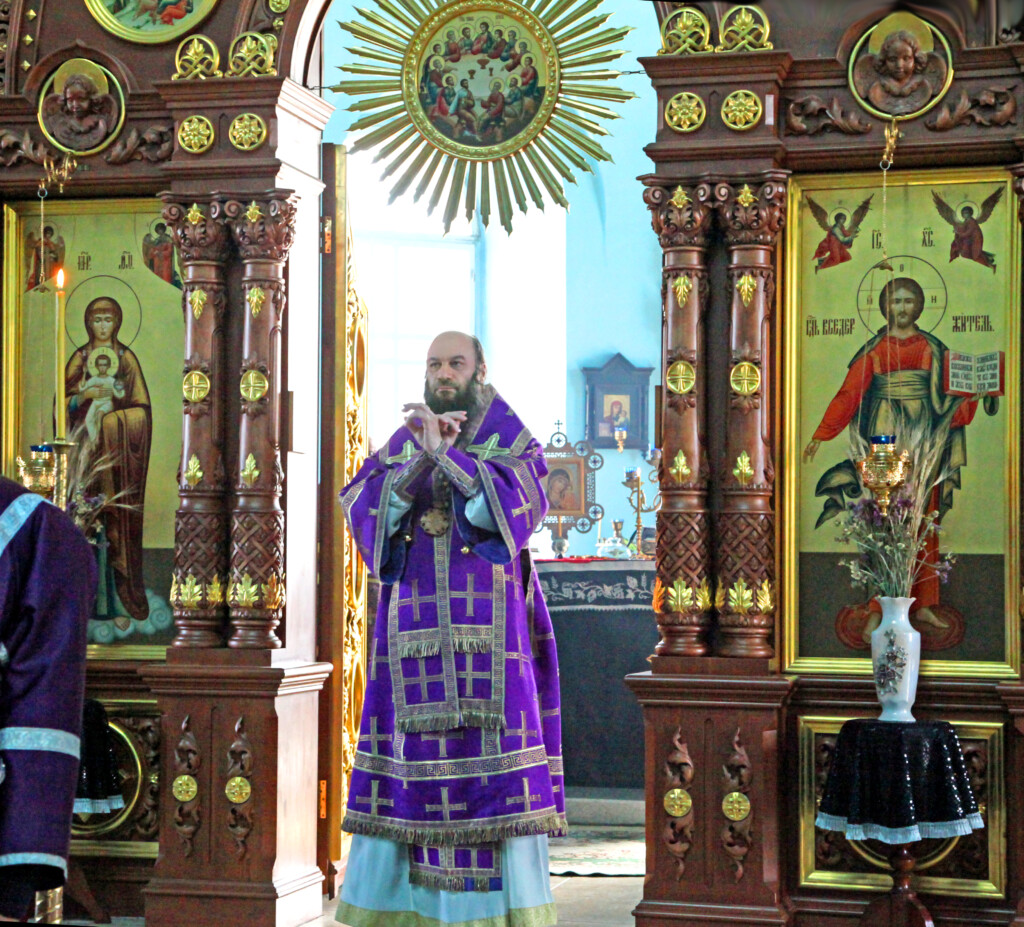 Его Преосвященству сослужили настоятель храма протоиерей Анатолий Сопига, клирики храма: священники Олег Соболевский, Георгий Чернявский и диакон Иоанн Алексеев.