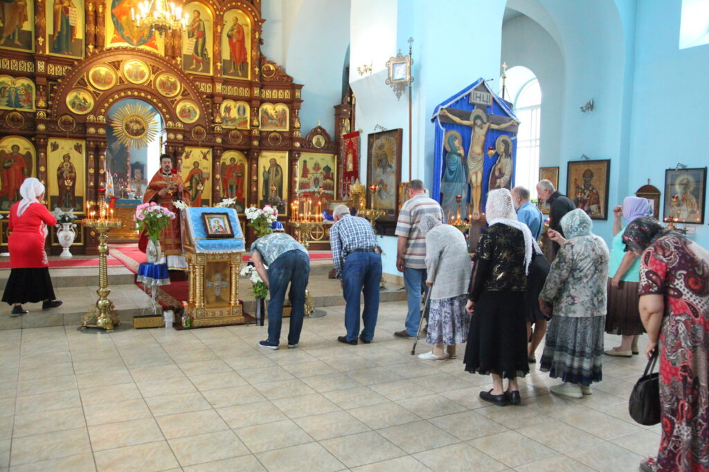 Коленопреклоненную молитву святому великомученику и целителю Пантелеимону вознесли протоиерей Анатолий Сопига, священники Олег Соболевский, Георгий Чернявский и все молящиеся.