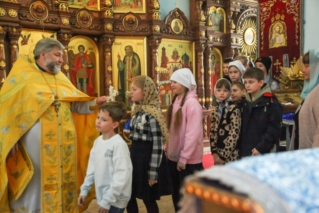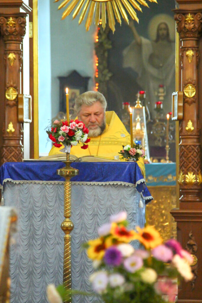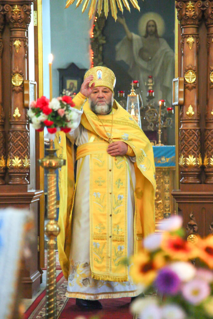 После отпуста Литургии настоятель храма протоиерей Анатолий Сопига поздравил всех с праздником, причастников с Причащением святых Таинств Христовых: «Дай Бог, чтоб Частные Дары пошли каждому из вас во очищение душ и телес ваших» и обратился к собравшимся с проповедью о Евангелии дня.