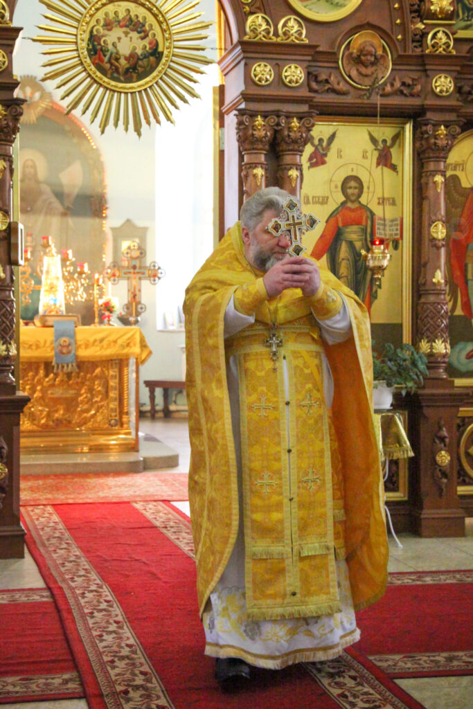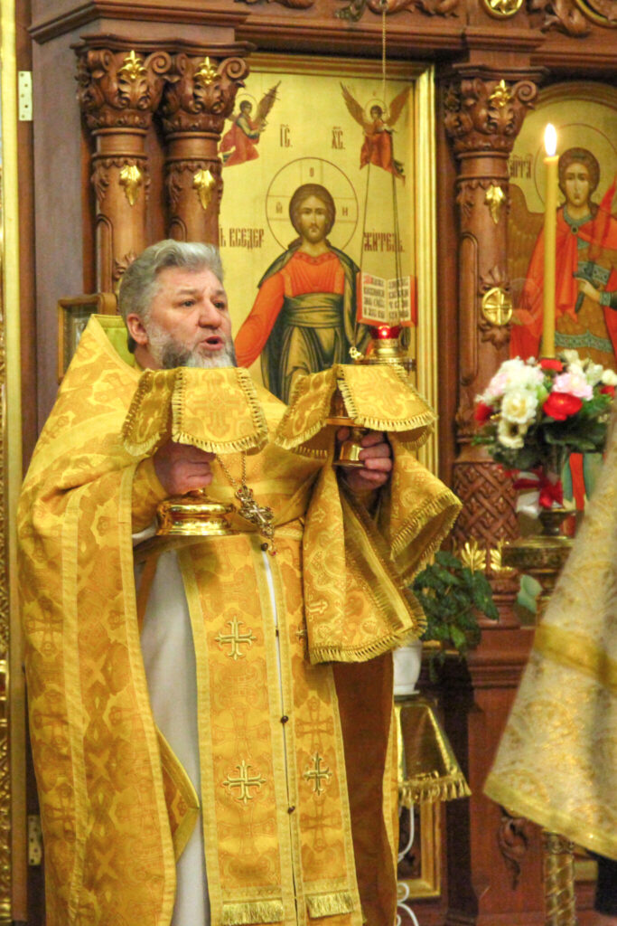 Божественную литургию совершил настоятель храма протоиерей Анатолий Сопига в сослужении диакона Иоанна Алексеева.