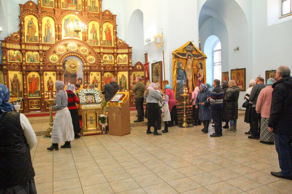 После отпуста Литургии настоятель храма протоиерей Анатолий Сопига поздравил всех с праздником, с воскресным днем, причастников с Причащением святых Таинств Христовых: «Дай Бог, чтоб Частные Дары пошли каждому из вас во очищение душ и телес ваших». Рассказал о предстоящем архиерейском богослужении 23 декабря в день памяти святителя Иоасафа Белгородского и о порядке богослужений на следующую седмицу. Затем настоятель обратился к собравшимся с проповедью по Евангелию дня о чуде исцеления десяти прокаженных Иисусом Христом. (Лк., 85 зач., XVII, 12-19.). В заключении настоятель, от имени всех прихожан, поздравил прихожанку нашего храма (со времени его восстановления), помощника директора воскресной школы «Покров», педагога Муртазину Ларису Ивановну с прошедшим днем рождения. Все вместе пропели Ларисе Ивановне: «Многая лета!».