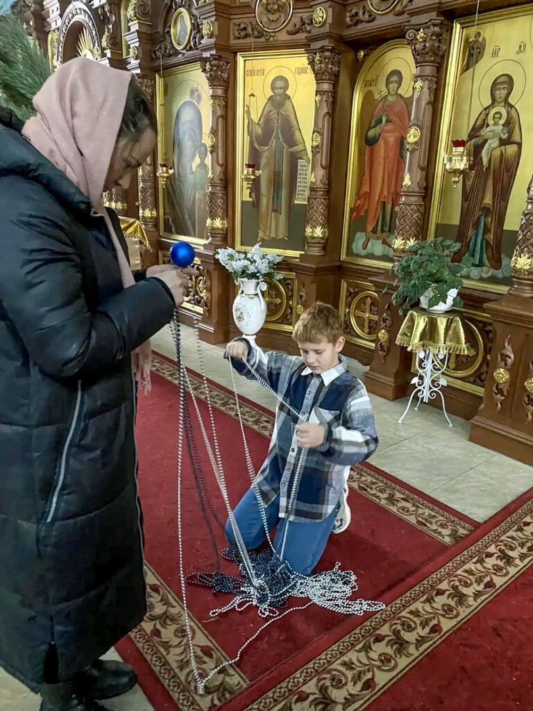 По благословению настоятеля храма протоиерея Анатолия Сопига для благоукрашения храма к Рождеству у алтаря установлены сосны. Радостное и увлекательное послушание — украсить их к празднику, доверили учащимся, педагогам и родителям школы. Весело, с предпраздничным настроением, помогая друг другу, старательно развесили игрушки и бусы на соснах. С послушанием справились на «отлично». Вертеп предстоит еще оформить, но уже ближе к празднику.