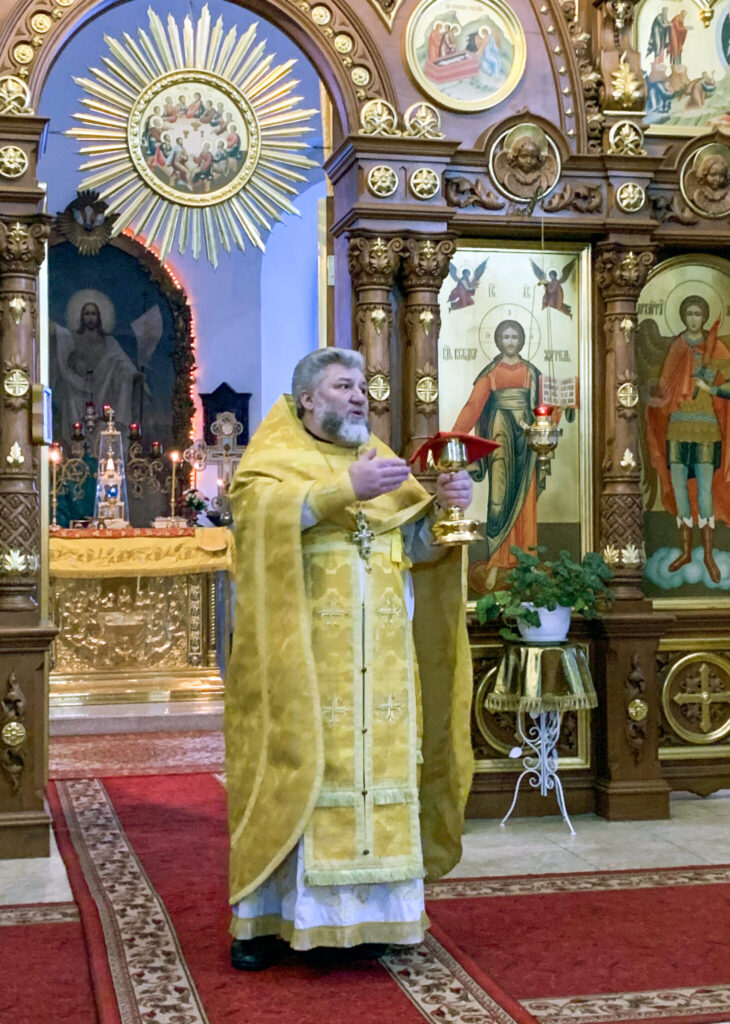 После отпуста Литургии настоятель храма протоиерей Анатолий Сопига поздравил всех с праздником, с субботним днем, причастников с Причащением святых Таинств Христовых: «Дай Бог, чтоб Частные Дары пошли каждому из вас во очищение душ и телес ваших».