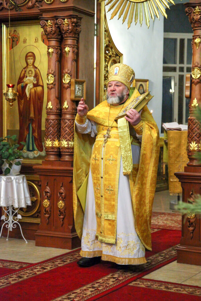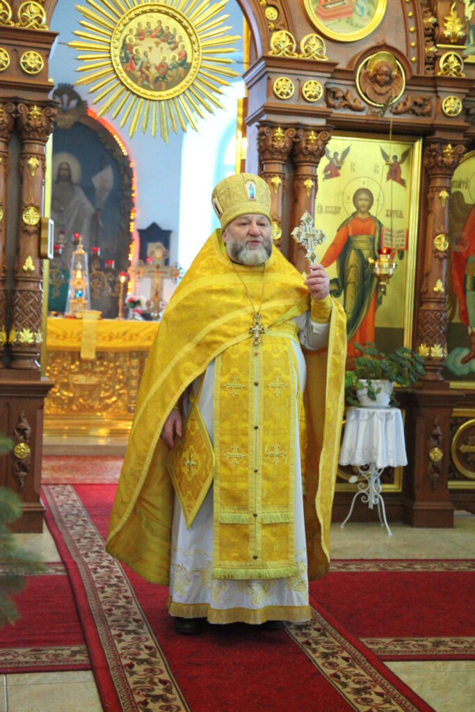 После отпуста Литургии настоятель храма протоиерей Анатолий Сопига поздравил всех с праздником, с воскресным днем, причастников с Причащением святых Таинств Христовых: «Дай Бог, чтоб Частные Дары пошли каждому из вас во очищение душ и телес ваших». Поздравил прихожанку Анастасию с именинами и все вместе пропели ей: многая лета. Настоятель обратился к собравшимся с проповедью о предстоящем великом празднике Рождества Христова. Рассказал о порядке богослужений на следующей седмице. В заключение отец Анатолий сказал, что осталось малое время поста и надо это время: «поститься постом приятным и прилежным».