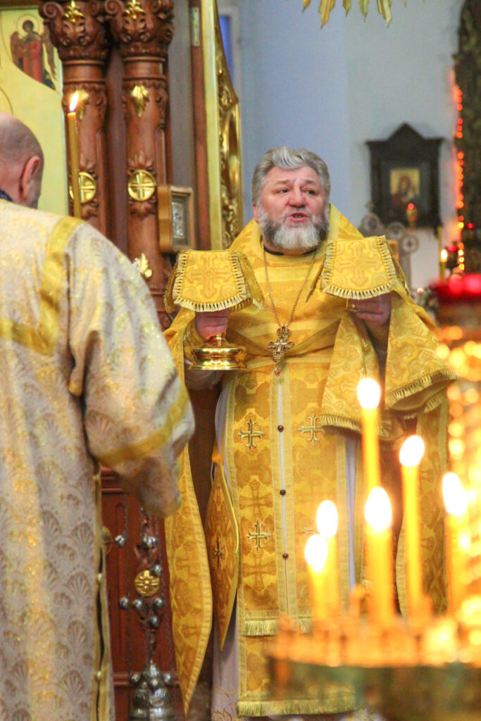 Вечернее богослужение этого дня с чтением акафиста отслужил священник Олег Соболевский.