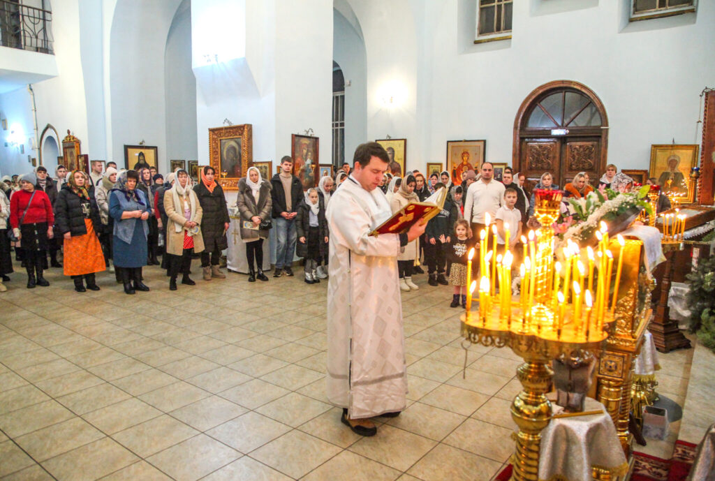 После отпуста Литургии настоятель храма протоиерей Анатолий Сопига поздравил всех с праздником, с воскресным днем, причастников с Причащением святых Таинств Христовых: «Дай Бог, чтоб Частные Дары пошли каждому из вас во очищение душ и телес ваших». Настоятель обратился к собравшимся с проповедью о празднике Рождества Христова. Рассказал о порядке предстоящих богослужениях. Отец Анатолий сказал, что в эти праздничные дни надо чаще вспоминать о тех, кто сейчас находятся в тяжелейших условиях, защищая мирное небо над нами. Поддержать и помочь им морально, материально и молитвой наш святой долг.