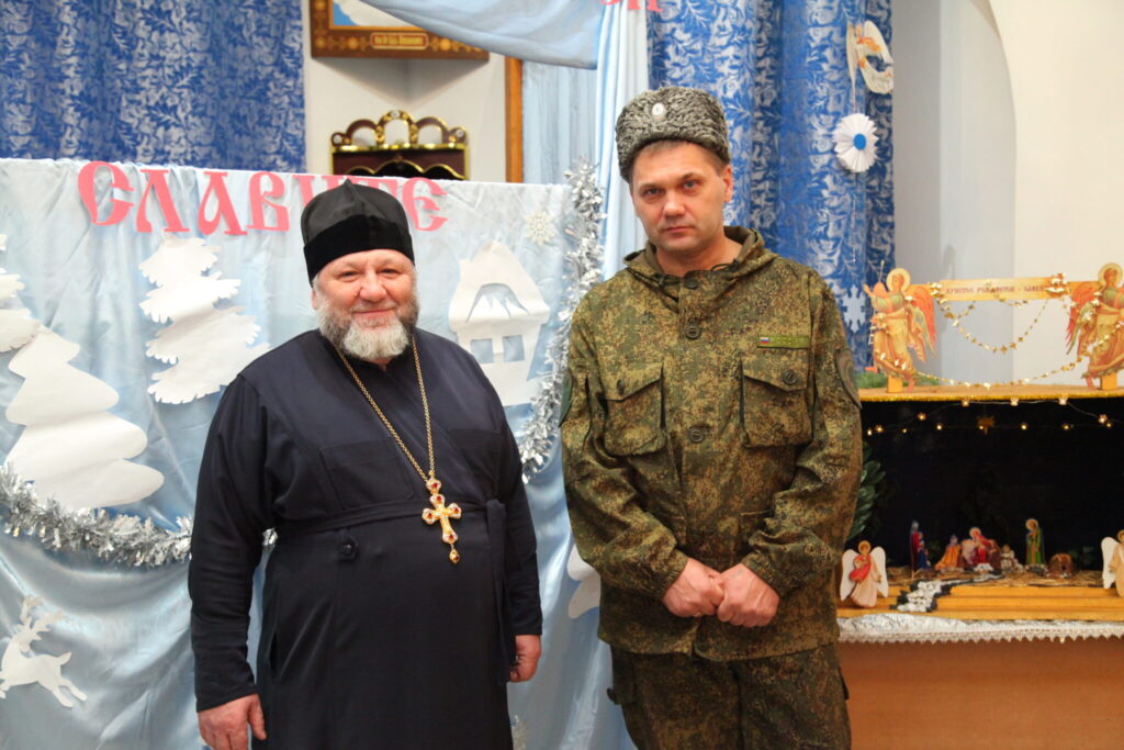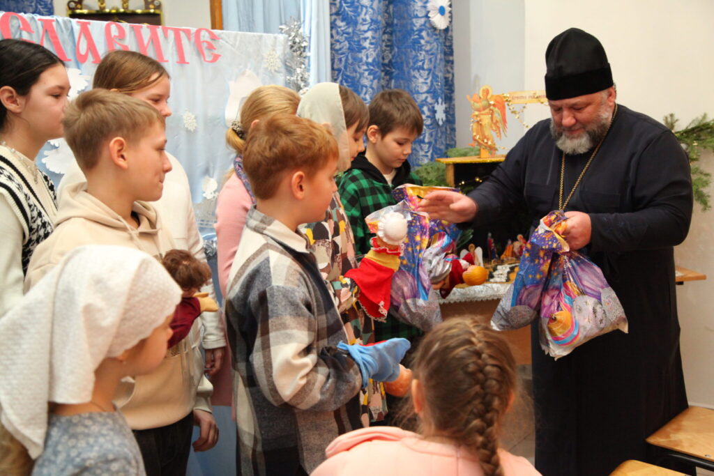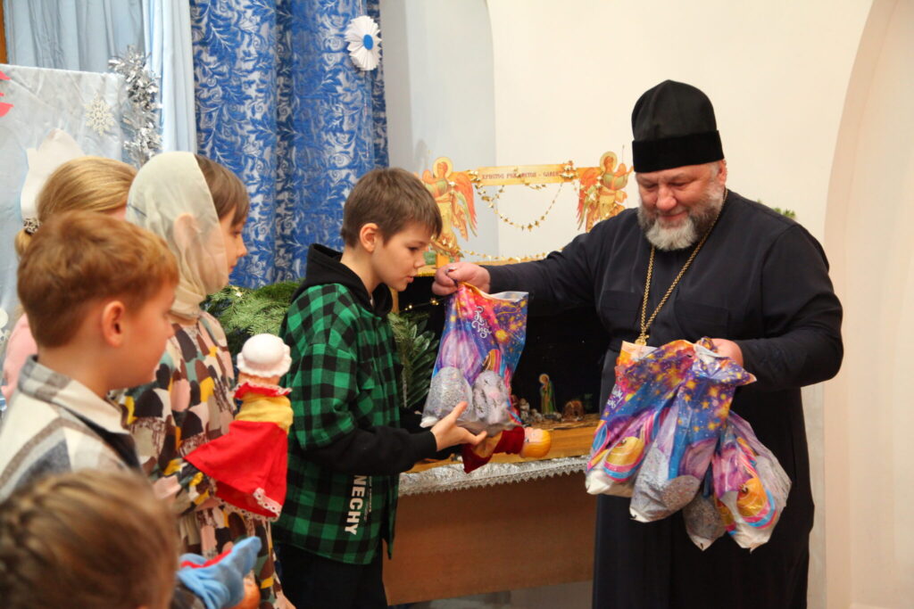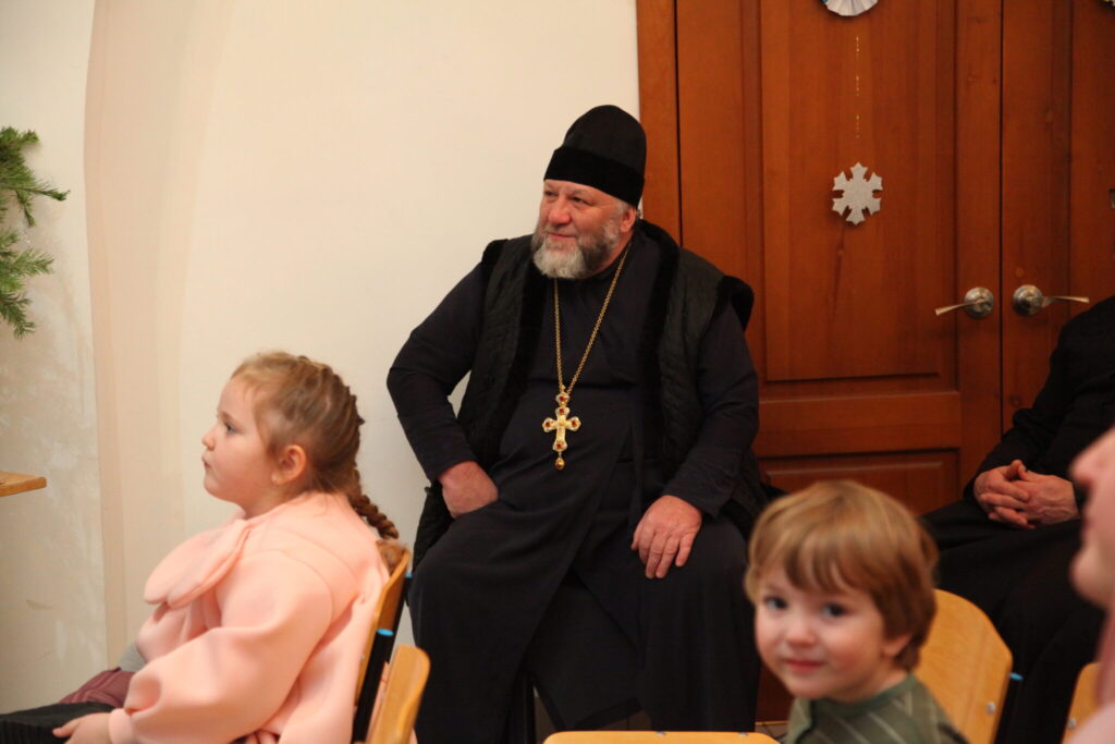 После спектакля отец Анатолий поздравил собравшихся с Рождеством Христовым, поблагодарил за интересное, поучительное представление, вручил каждому ребенку подарки и торт для всех. Праздник закончился трапезой.