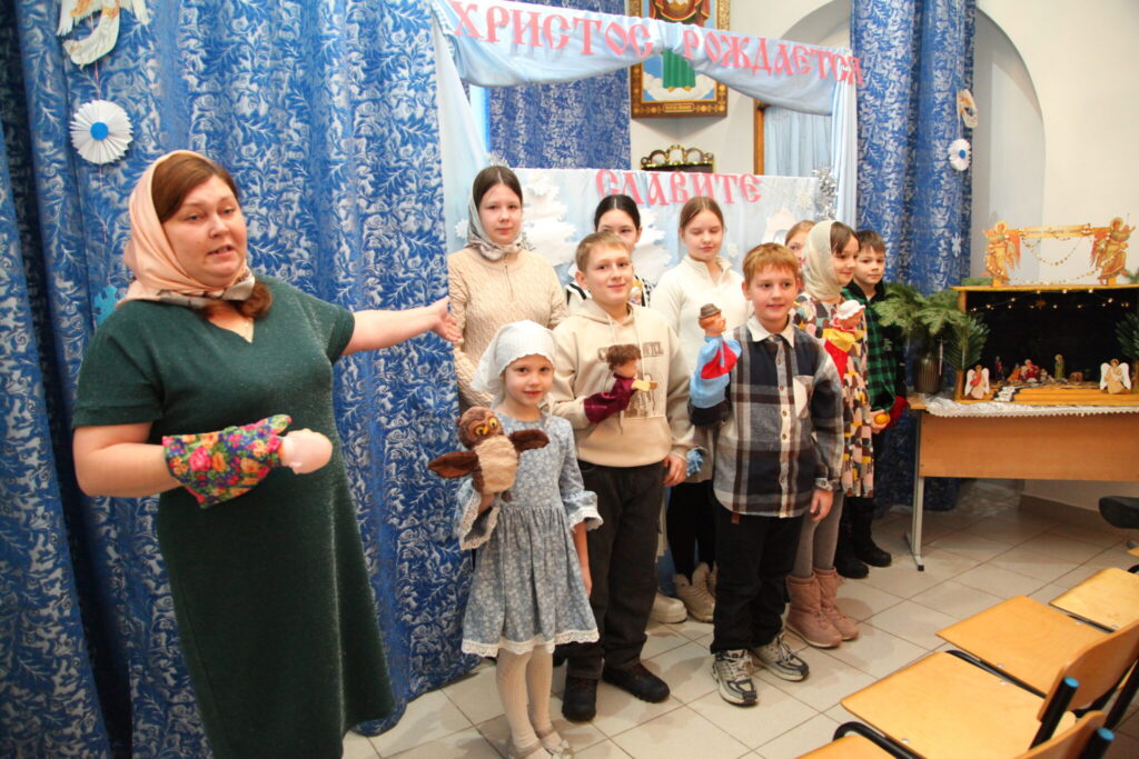 В первое воскресение после Рождества Христова, по окончании богослужений, в воскресно-приходской школе «Покров», по благословению настоятеля протоиерея Анатолия Сопиги, прошел Рождественский праздник. Для прихожан храма, учениками младшой и средней групп и педагогами воскресной школы был показан кукольный спектакль «Три ржаных колосьев». Сказка о жизни двух семей бедного крестьянина и богатого крестьянина. Бедный старается помочь всем, не жалея последних колосьев. И Господь благословляет его и приумножает его хозяйство. А из-за жадности богатого, его хозяйство пошло в убыток. В конце сказки богатый крестьянин с женой сделали вывод, что нужно помогать нуждающимся и жить добрыми делами!