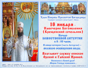 18 января (5 января по старому стилю), день постный— в Русской Православной Церкви день Навечерия Крещения Господня или Крещенский сочельник.