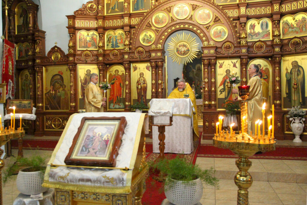 Божественную литургию совершил настоятель храма протоиерей Анатолий Сопига в сослужении диакона Иоанна Алексеева.
