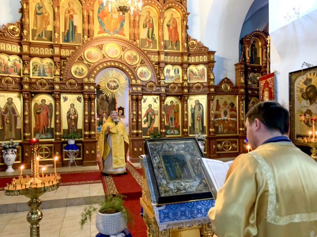 Божественную литургию совершил настоятель храма протоиерей Анатолий Сопига в сослужении диакона Иоанна Алексеева.