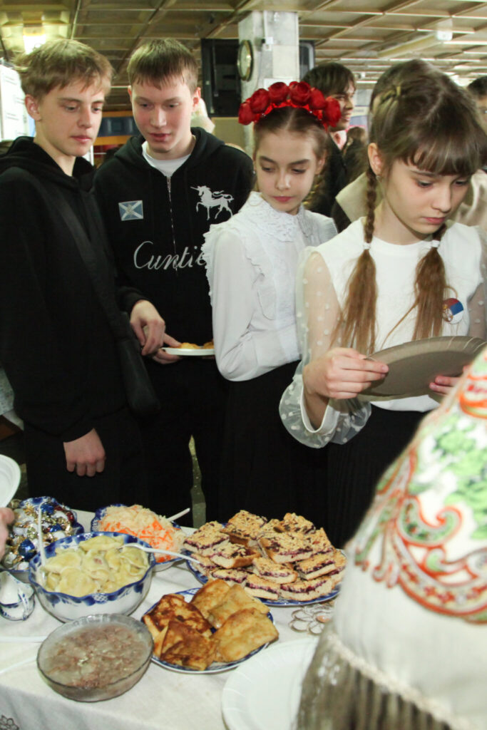 ОРСК. 14 февраля 2026 г. В субботу седмицы мясопустной, представители воскресной школы храма Покрова Пресвятой Богородицы (бывший женский монастырь) приняли участие в Фестивале национальной кухни народов России, приуроченный ко Всемирному дню православной молодежи, который проходил в Орском гуманитарно – технологическом институте.
