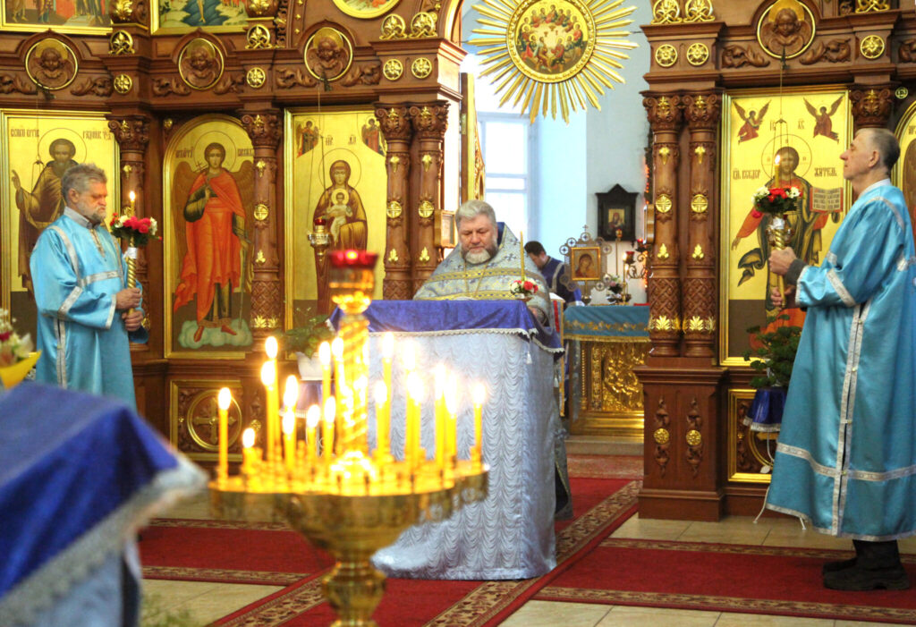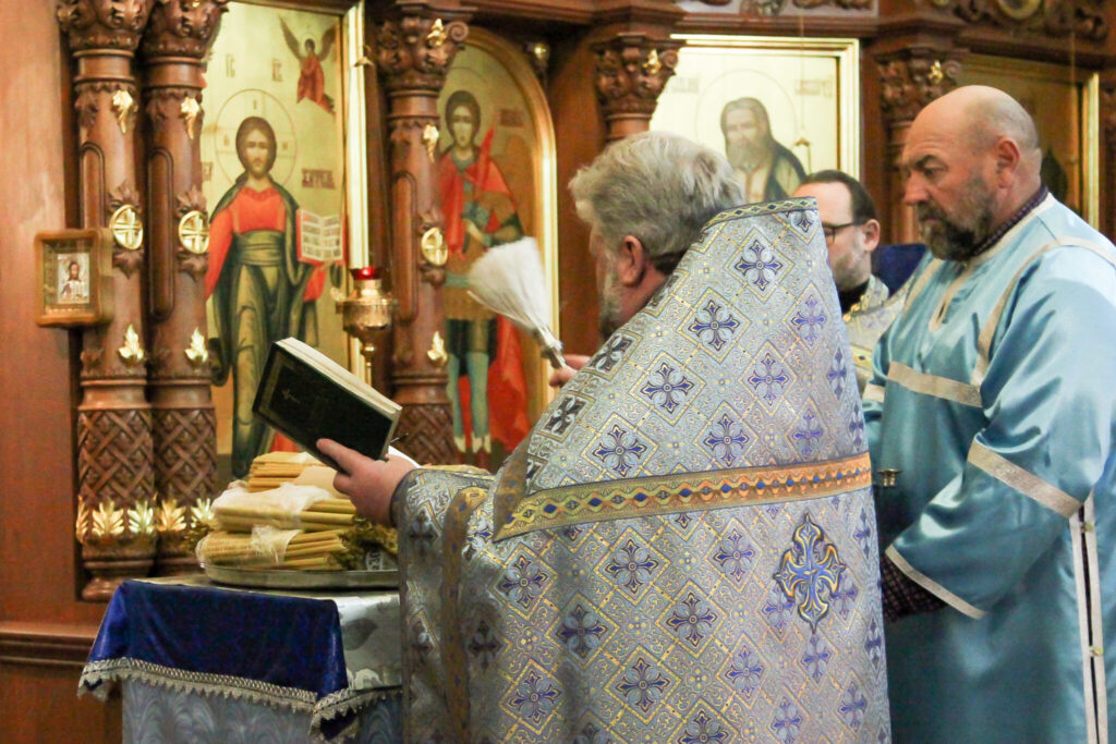 Перед Божественной литургией, совершили чин освящения свечей настоятель храма протоиерей Анатолий Сопига и священник Олег Соболевский. В третьей молитве этого чина священник обращается к Богу: «Господи Иисусе Христе, Свете истинный, просвещаяй всякаго человека грядущаго в мир: излей благословение Твое на свещы сия, и освяти я светом благодати Твоея: изволи же милостиве, да яко сия светила огнем видимым возжженна нощныя тьмы прогоняют, тако сердца наша, невидимым огнем, си есть, светлостию Святаго Духа просвещенна, слепоты всяческих избежат…».