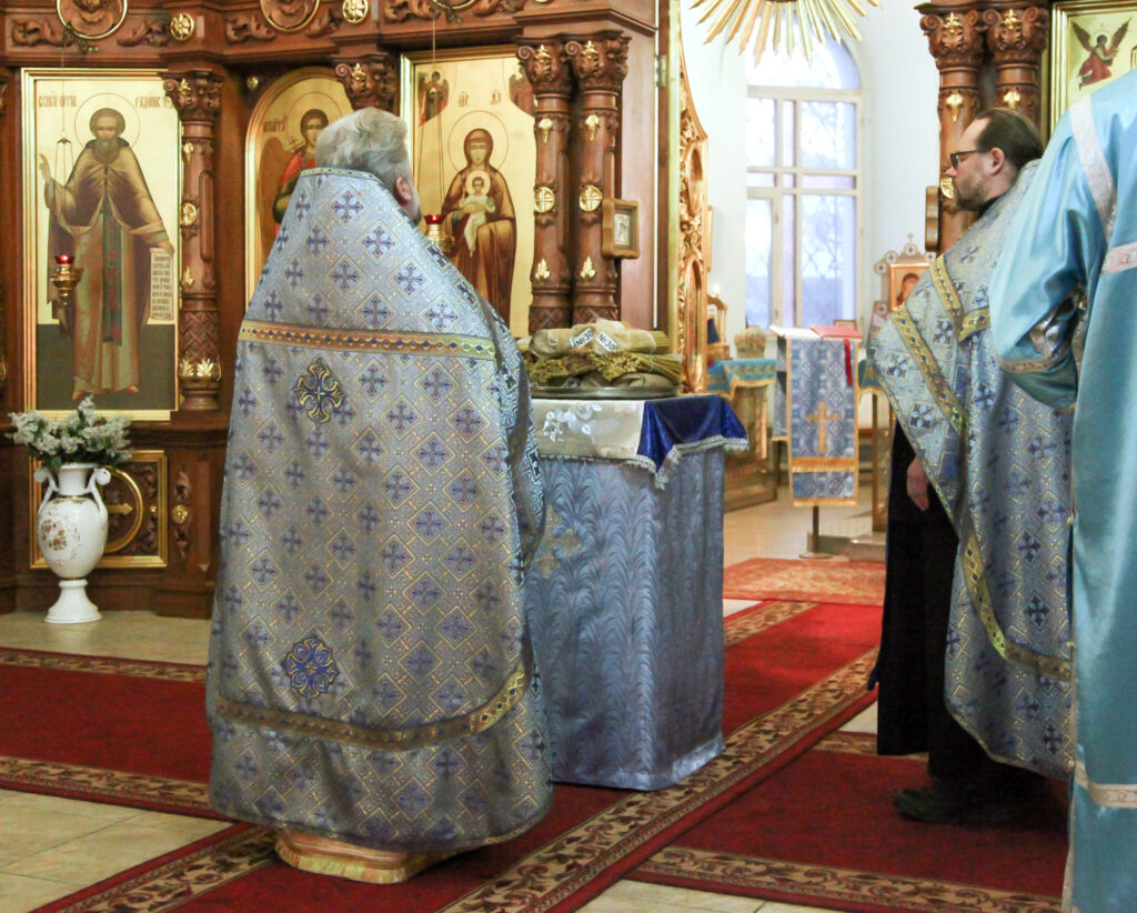 После отпуста Литургии настоятель храма протоиерей Анатолий Сопига поздравил диакона Иоанна с 25-летием диаконской хиротонии. Настоятель поблагодарил отца Иоанна за многолетние служение и труды, понесенные для прихода и воскресной школы «Покров». Все вместе пропели: «многая лета!». Далее отец Анатолий поздравил всех с праздником, причастников с Причащением святых Таинств Христовых: «Дай Бог, чтоб Частные Дары пошли каждому из вас во очищение душ и телес ваших» и обратился к собравшимся с проповедью о Сретении Господнем, которая предстоит каждому в свое время и о Страшнем суде. В заключении настоятель рассказал о порядке богослужений на следующей седмице.