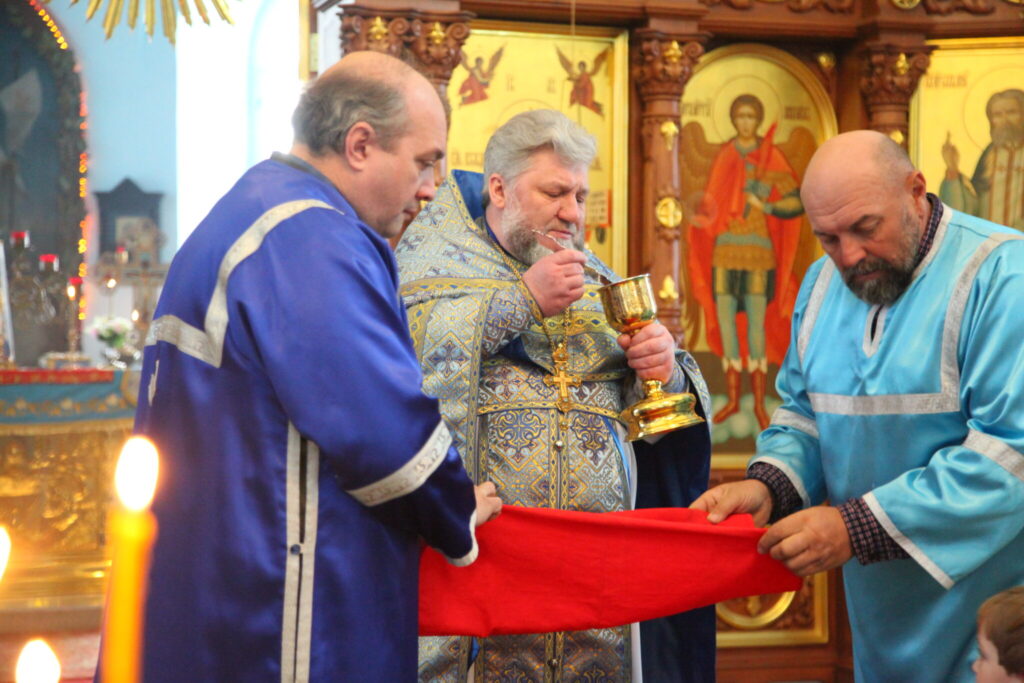 Божественную литургию совершил настоятель храма протоиерей Анатолий Сопига в сослужении диакона Иоанна Алексеева.