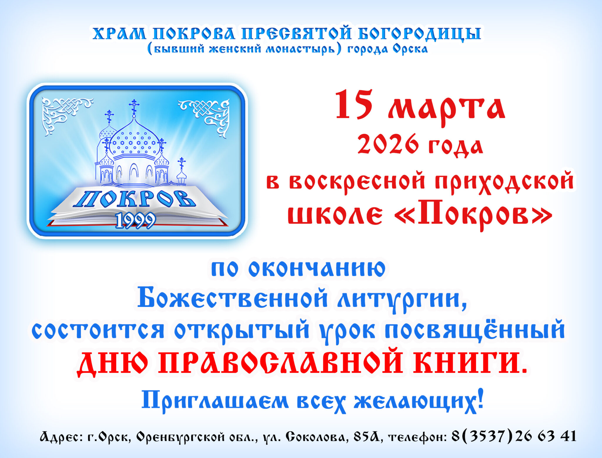 Православная книга учит человека добру, милосердию, состраданию, воспитывает в нем любовь к Отечеству и родному очагу, позволяет увидеть мир во всем его многообразии, играет важную роль в духовно-нравственном воспитании и образовании современного человека.